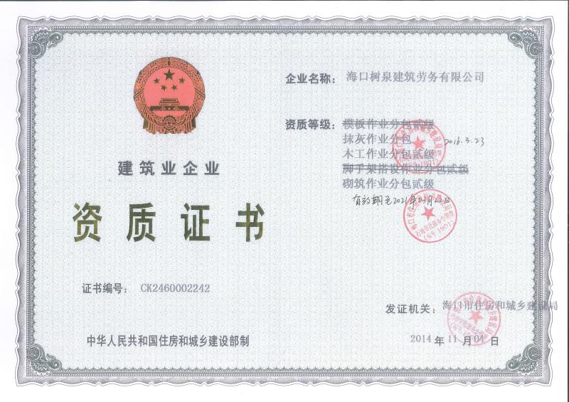 ??跇淙ㄖ趧?wù)有限公司成立于2011年,公司位于海口,其前身是一家專業(yè)建筑施工隊(duì),自2004年即開始在海南從事建筑勞務(wù)施工。自成立至今,公司已經(jīng)擁有一支科學(xué)管理、質(zhì)量過硬、能打硬仗,搶工期的專業(yè)隊(duì)伍。能獨(dú)立承擔(dān)大中型工業(yè)與民用建筑 、室內(nèi)外裝修、各類機(jī)電設(shè)備安裝工程。代表工程有??跒I海華庭、三亞時(shí)代海岸T01/02/04/05棟高層、合肥東海花園二期、陵水富力灣B區(qū)高層、三亞金中海(酒店)、瓊海大印經(jīng)典花園、海口環(huán)球海景大酒店(四星級酒店,在建中)、陵水珍珠大廈(五星酒店)、??谌f達(dá)廣場、美蘭機(jī)場二期。